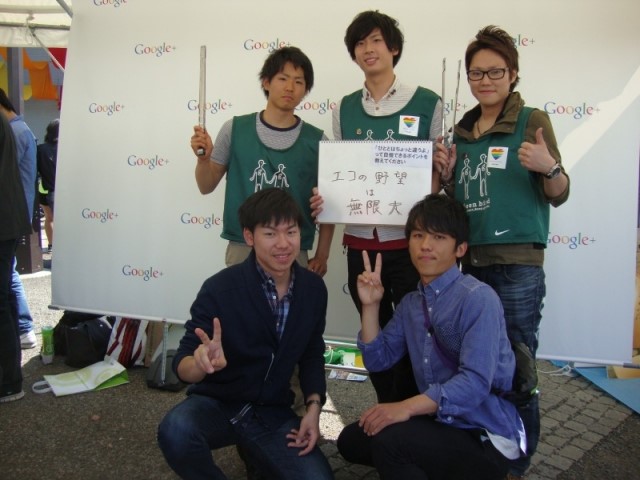 (写真左上が私、真ん中が竹野。二人とも学生チームリーダーです。)