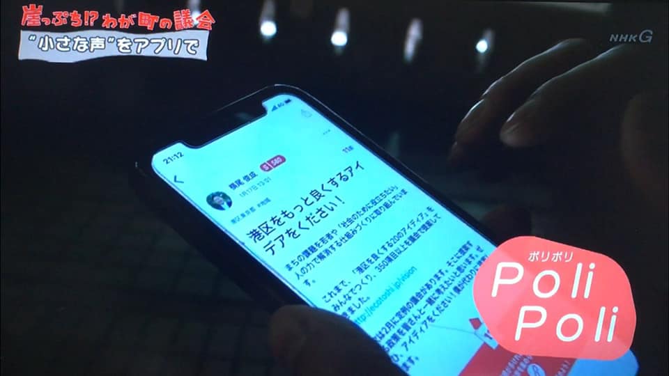 普段、議会に届きづらい「小さな声」をいかに政策に反映させるか。政治や街づくりを議論するアプリ「PoliPoli」を使った取り組みをご紹介いただきました。2〜3ヶ月に一度開催している政策づくりのワークショップ「みなとーく」の様子も!