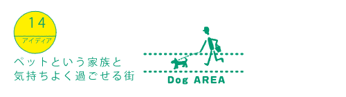ペットは人の心を癒してくれる、かけがえのない家族の一員です。ドックランの充実に加えて、ペットとふれあえるお店や施設を増やします。ペットと歩ける道を整備する一方、NPOなどと連携して飼い主にはマナーをきちんと守ってもらえるように啓発し、動物が苦手な人も含めて人とペットが共存できる環境を整えます。