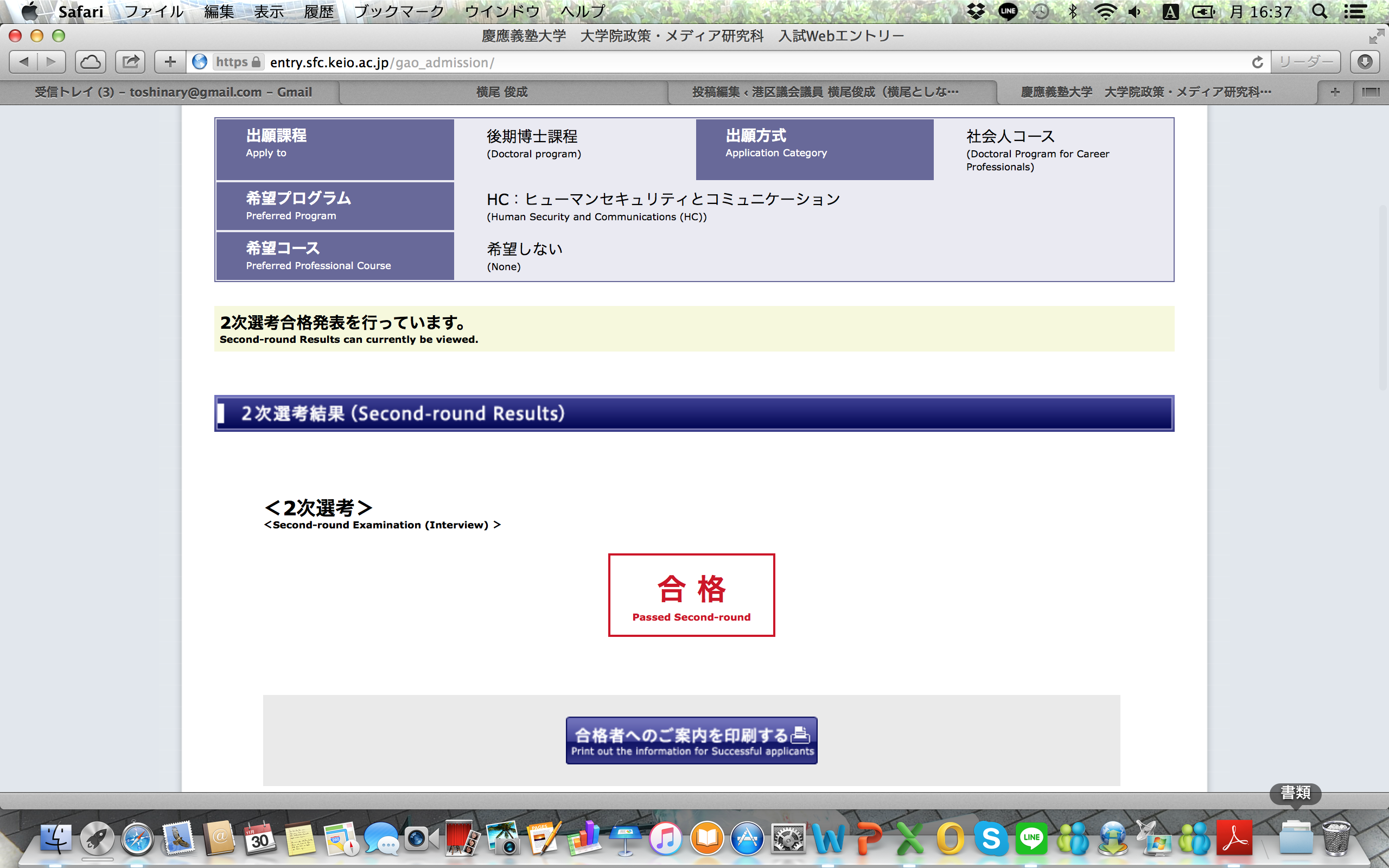 本日、慶応義塾大学大学院政策・メディア研究科(後期博士課程)から合格通知をいただきました!