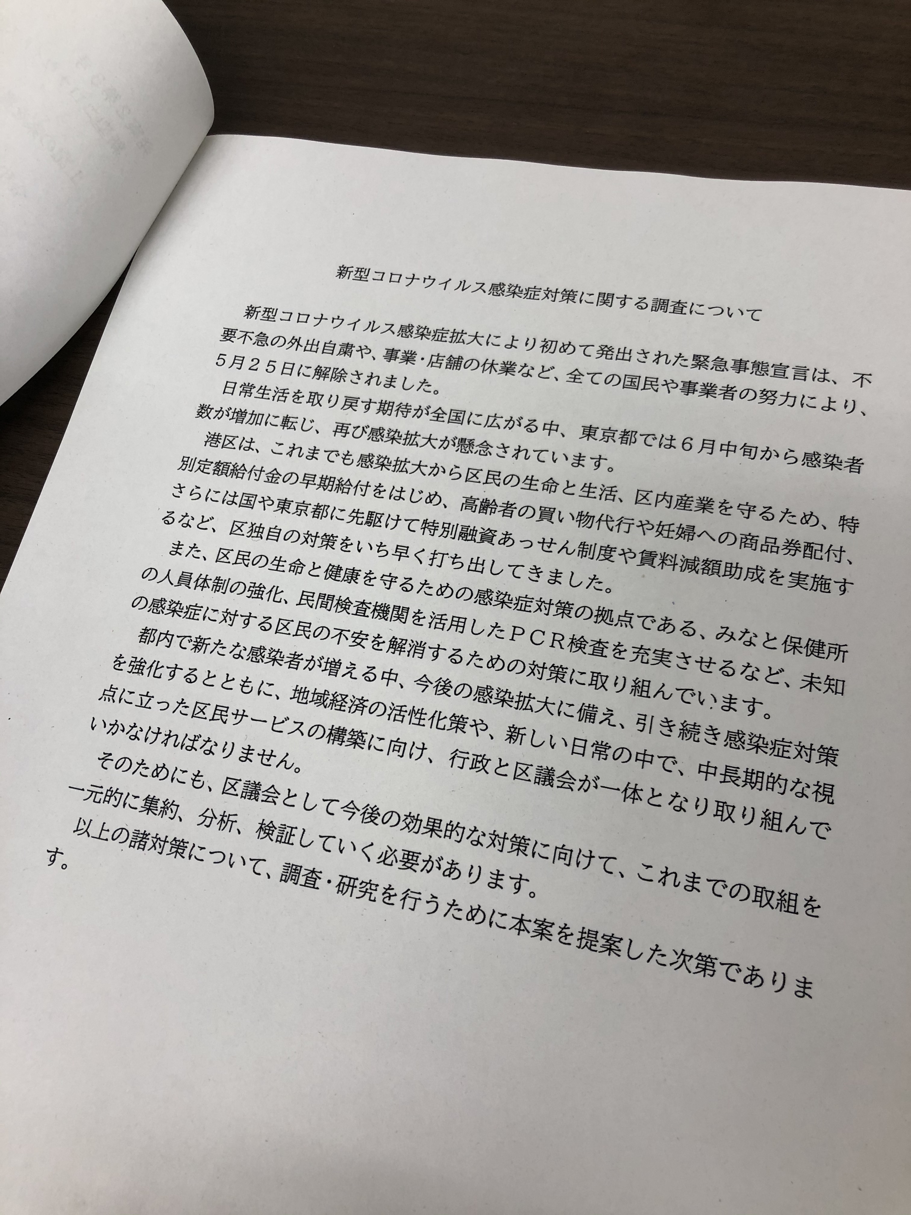 2020.07.03新型コロナウイルス感染症対策を話し合う委員会の委員長になりました。港区議会の最終日、「エレベーター等安全対策・新型コロナウイルス感染症対策特別委員会」の委員長になりました。新型コロナウイルスの感染者数が増加に転じ、再び感染拡大が懸念されていますが、今後に備え、港区の施策がさらに充実したものになるよう、皆で議論を重ねていきたいと思います。ご要望等、どんどんお寄せいただければと思います。 SHARE THIS ARTICLEPrevious僕の議員活動の一端が本に!Next「Withコロナ時代のまちづくり」をテーマとした「みなとーく」!次回は8/8(オンライン)です。一覧へ戻る