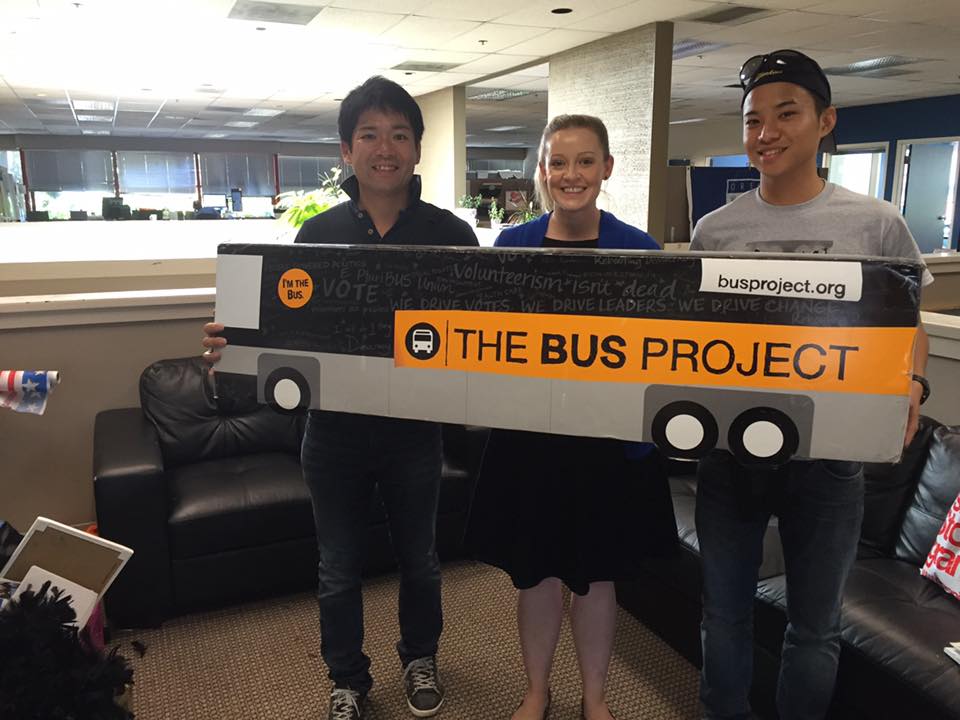 (The Bus Projectは候補者をバスに乗せて若者を訪ね回る。写真は筆者と、一緒に行ったNPO法人僕らの一歩が日本を変える。代表の後藤寛勝くん。)